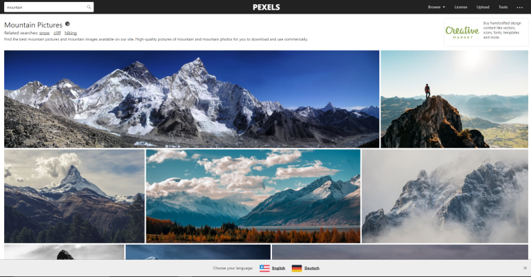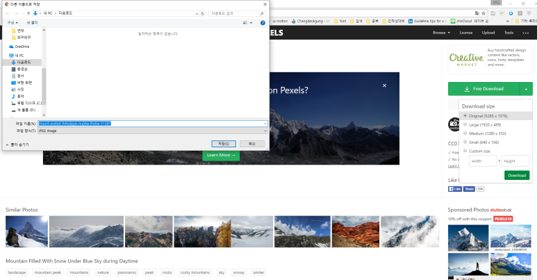 저는 Mountain을 쳐보았는데요 산 관련 고화질 이미지가 엄청 많이 뜨네요