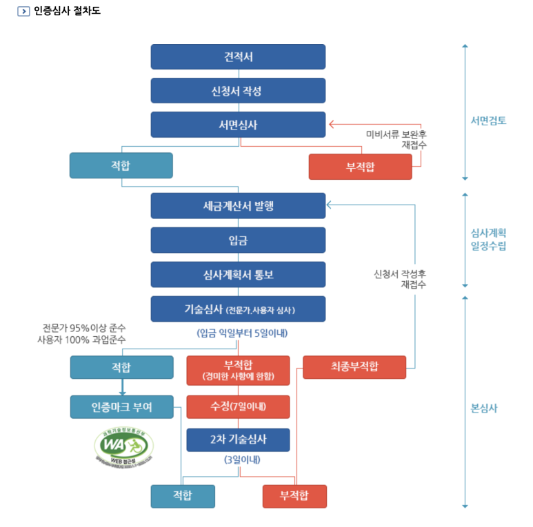 복잡해 보이지만 사실은 인증평가원에서 제공하는 양식에 맞춰서 심사요청을 메일로 보내고